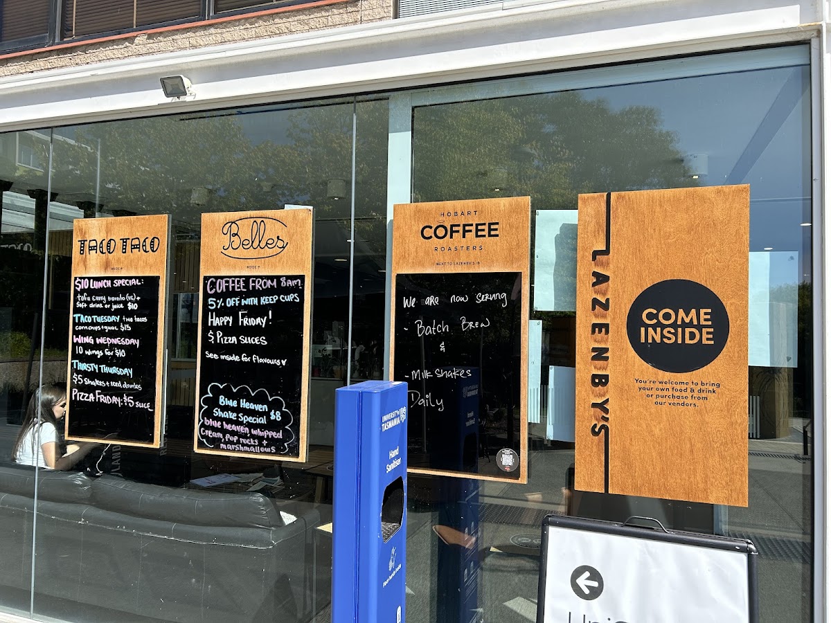 The menu at Lazenby's Precinct offers a variety of options suitable for breakfast, coffee breaks, and light meals. As a shared space among a cafe, a coffee shop, and additional food vendors, the menu primarily includes coffee and other beverages alongside food choices that cater to different preferences.